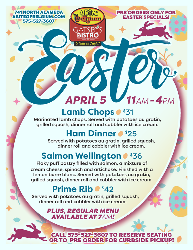 A Bite of Belgium offers, perhaps, the most unique dining experience in Las Cruces. Whether you’re craving a Lamb Sandwich, Eggs Florentine, Pain Perdu, or a bowl of Green Chile Pork, come enjoy exceptional food in a bustling, casual bistro environment in Las Cruces’ historic district!